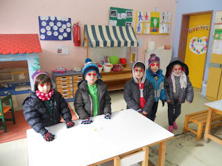 Στη συνέχεια φτιάξαμε τους χιονοανθρωπονοματούληδες μας και κάναμε συγκρίσεις με τα ονόματα μας